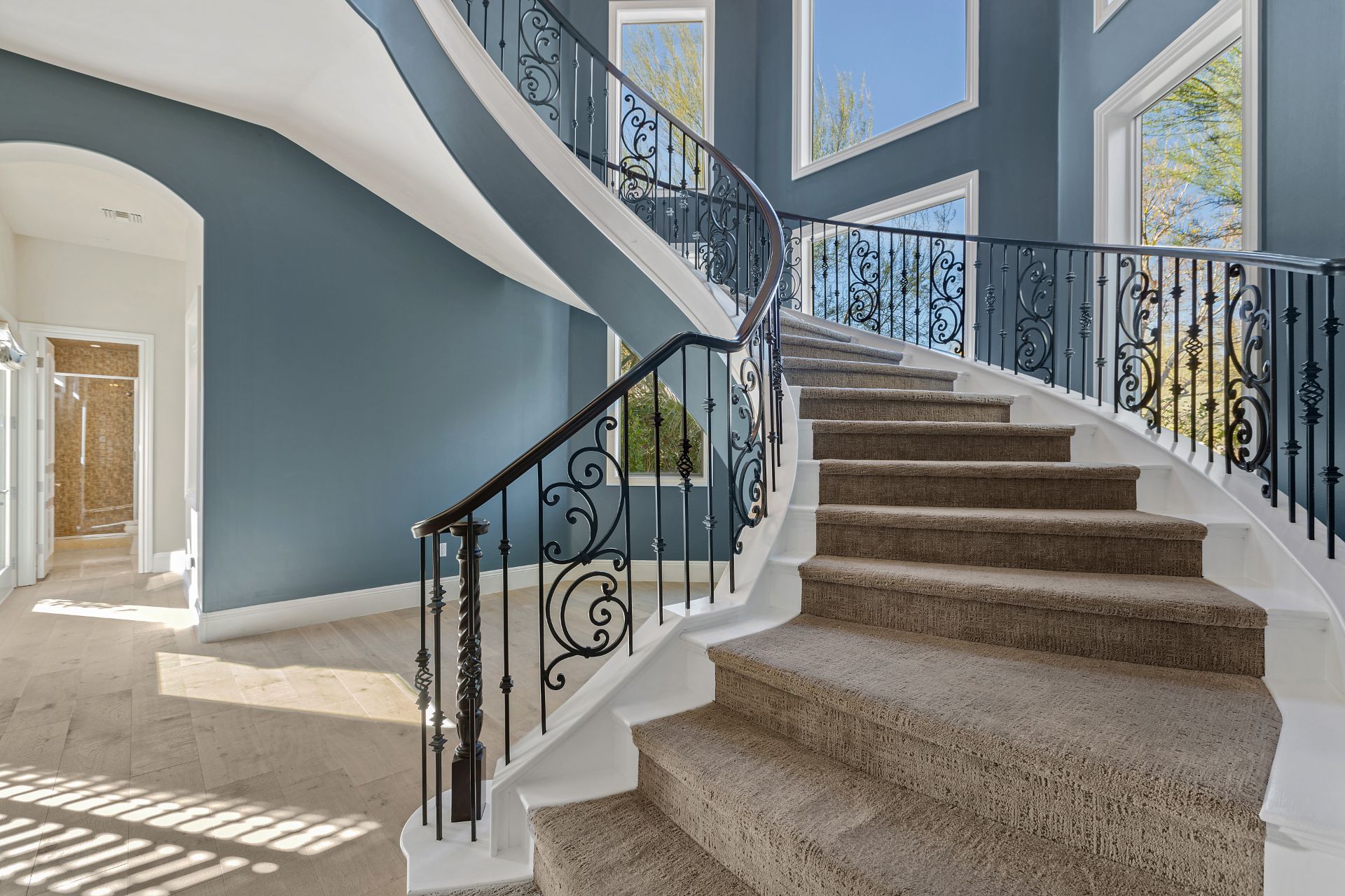 From the exquisitely-appointed interior to the park-like ambience of the outdoors, a new owner will luxuriate in the good life of Las Vegas. The residence features a unique floor plan with more than 5,500 square feet of space. A dramatic entry foyer staircase leads to the private second floor. Contrasting contemporary lines, large walls of glass and designer lighting are balanced by distinctive details, including traditional accents and interior columns to delineate the different spaces.